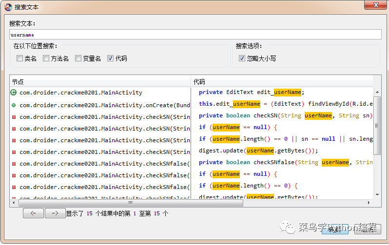 发现并没有相关的代码段,那我们再搜索 "username" 试试(中文搜不到,就试试英文咯):