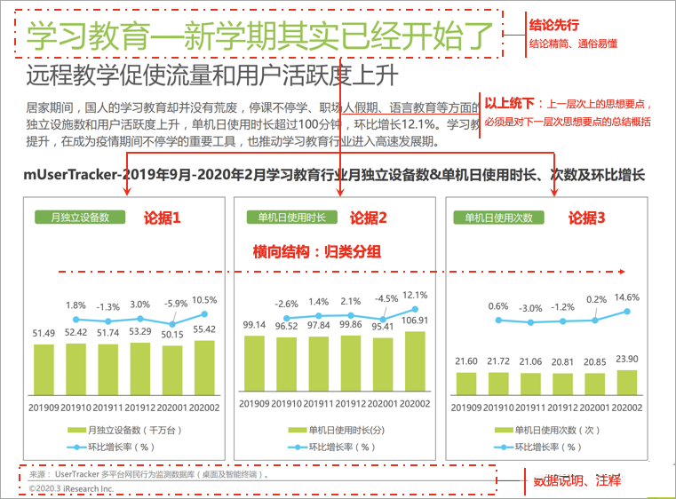 上面讲了报告的写作原则,举个例子,参考艾瑞网,《留存与未来-疫情背后的互联网发展趋势报告》: