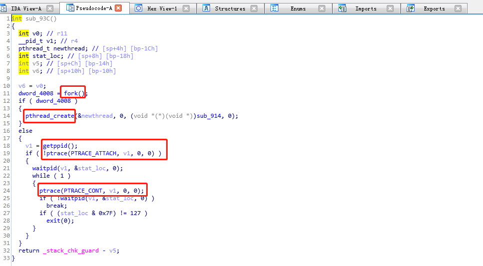 理解这段代码需要一些 进程和线程的知识,目前我也属于萌新的状态,只知道将 ptrace 函数NOP掉就可以过它的检测。下面我们就开干吧。