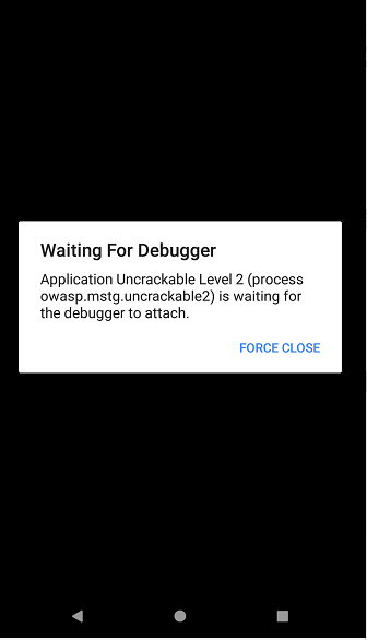 adb shell am start -D -n owasp.mstg.uncrackable2/sg.vantagepoint.uncrackable2.MainActivity