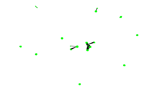 这个图形非常稀疏,Networkx 通过最大化每个集群的间隔展现了这种稀疏化。