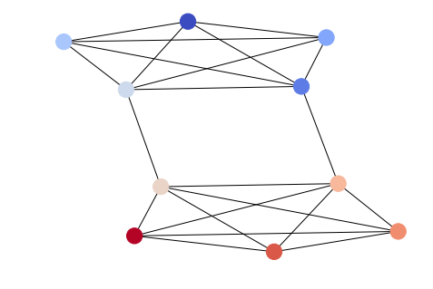 我按编号(1~10)用颜色编码了每个节点,代码如下: