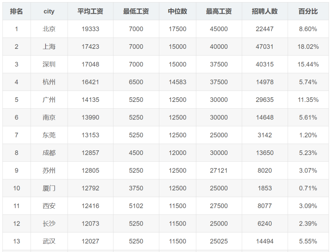 #主要城市工资