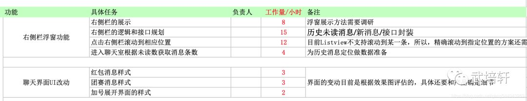 这个能力是需要锻炼的,做好拆分,然后在实际开发过程中根据实际时间花销,回顾时间评估的准确性,以便让下次更准确。慢慢地,就会越来越精确,评估时间有依有据,不再是拍脑门给出的时间。下面看一个例子: