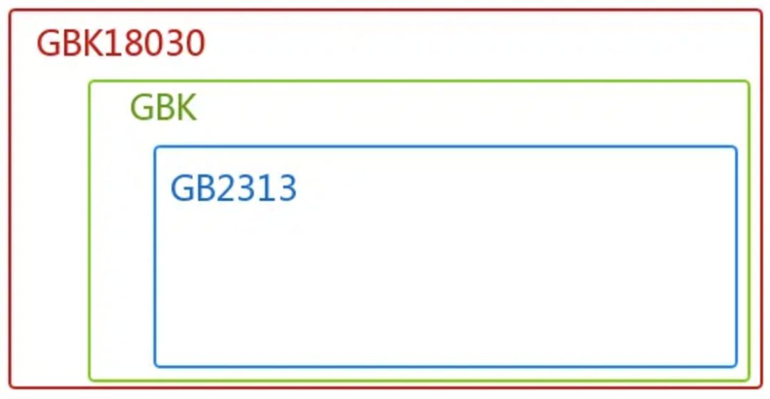GBK 编码是 GB2312 编码的超集,向下完全兼容 GB2312,兼容的含义是不仅字符兼容,而且相同字符的编码也相同。而 GB18030 编码向下兼容 GBK 和 GB2312,GB18030 编码是变长编码。