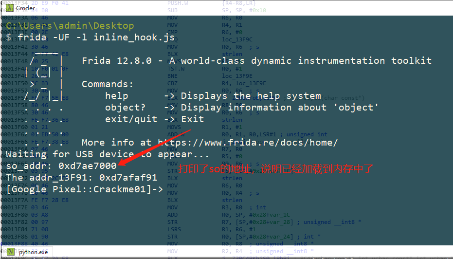 手机上打开app,让so加载进来,然后用frida进行Hook: