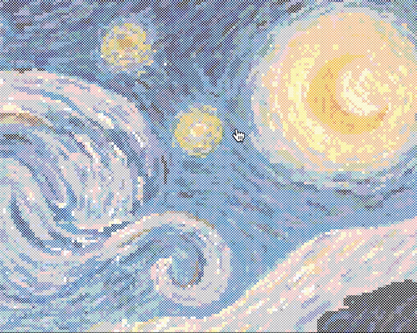 比如梵高的《星空》,项目中展示了 10×10、25×25、50×50 三种圆形拼成的规格: