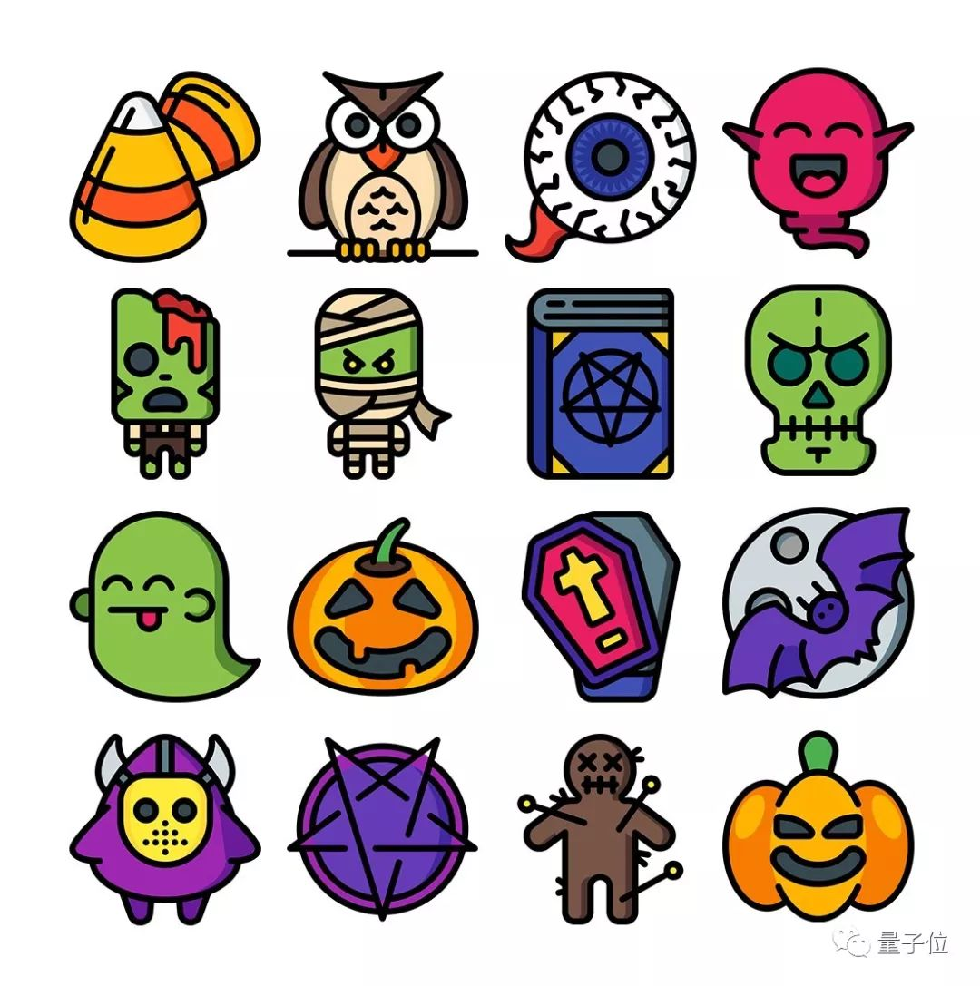 另外还有一组万圣节主题 icon,包括各种南瓜灯、小鬼头、蝙蝠、猫头鹰: