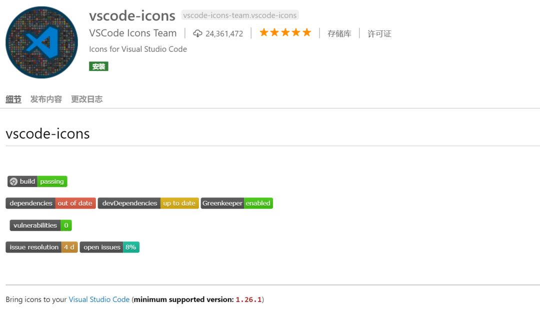 vscode-icons 插件可以实现对各种文件类型的文件前的图标进行优化显示,这样我们在查看长长的文件列表的时候,可以直接通过文件的图标就可以快速知道文件的类型,而不是去看文件的后缀。