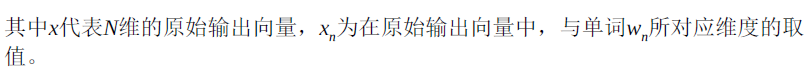 输出层向量可以通过隐含层向量以及连接隐含层和输出层之间的K*N维的权重矩阵计算得到。