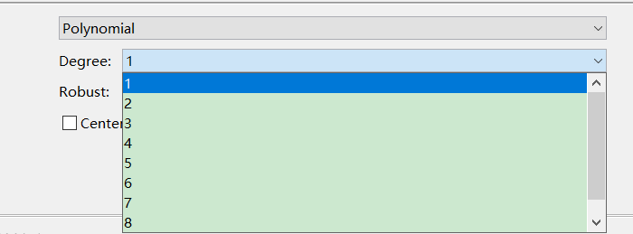 Polynomial:多项式逼近,有9种类型,linear ~、quadratic ~、cubic ~、4-9th degree ~