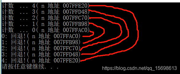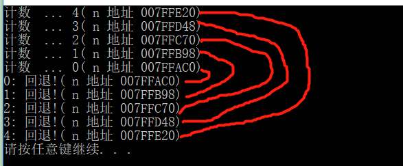 cout << n << ": 回退!" << "( n 地址 " << &n << ")"<<endl;