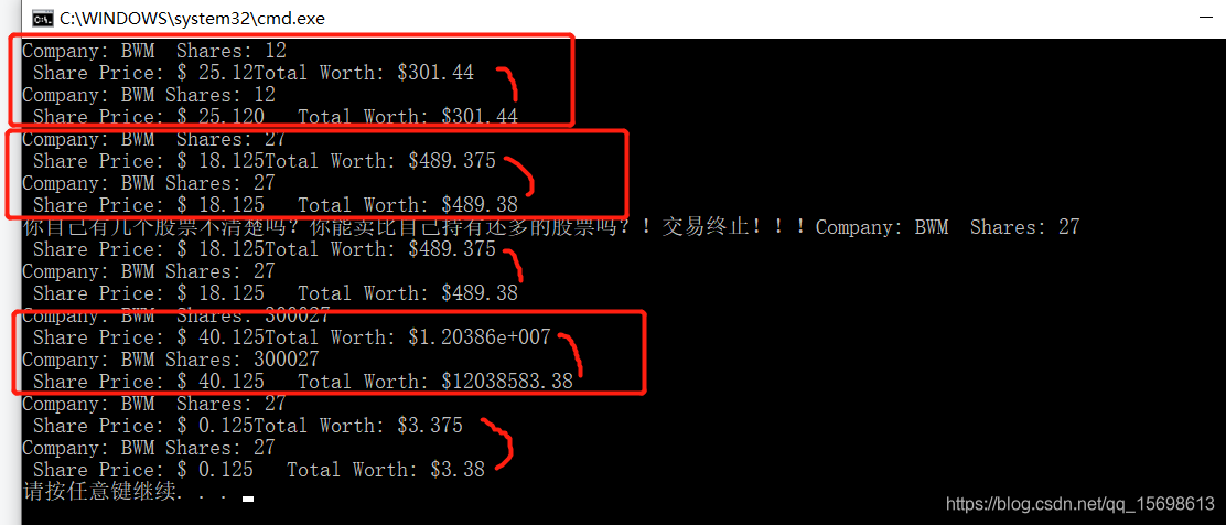 cout << "股票不能卖负数,你脑筋有问题?" << "中断交易了";