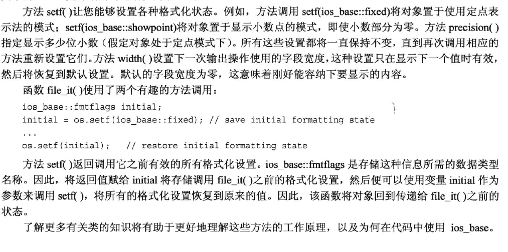 initial = os.setf(ios_base::fixed);//save initial formatting state