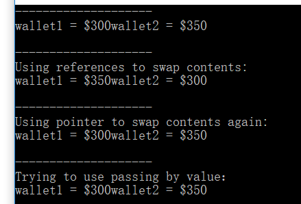 cout << "wallet2 = $" << wallet2 << endl << endl;