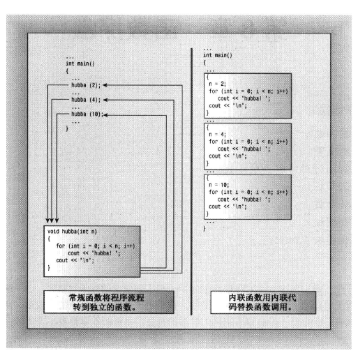 内联代码,程序无需跳到另一个位置执行代码,再跳回来。因此,内联函数运行速度比常规函数稍快,但代价是需要占用更多内存。