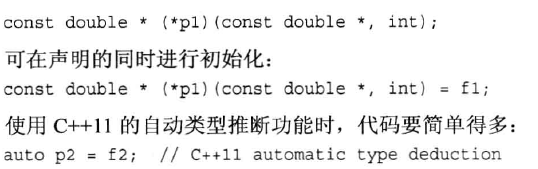 //C++11 等价于 const double *(*(pc)[3])(const double *,int) =&pa;