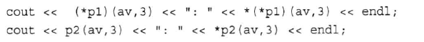 cout << (*p1)(av, 3) << ": " << *(*p1)(av, 3) << endl;