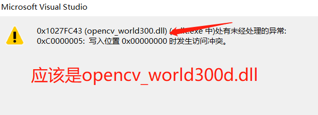 0x1027FC43 (opencv_world300.dll) (split.exe 中)处有未经处理的异常: 0xC0000005: 写入位置 0x00000000 时发生访问冲突。