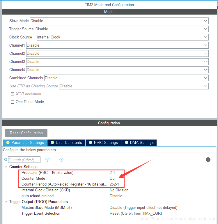 计数器从0x00计数到0xFC,定时周期为31746秒,使用STM32CuBeMX配置如下所示: