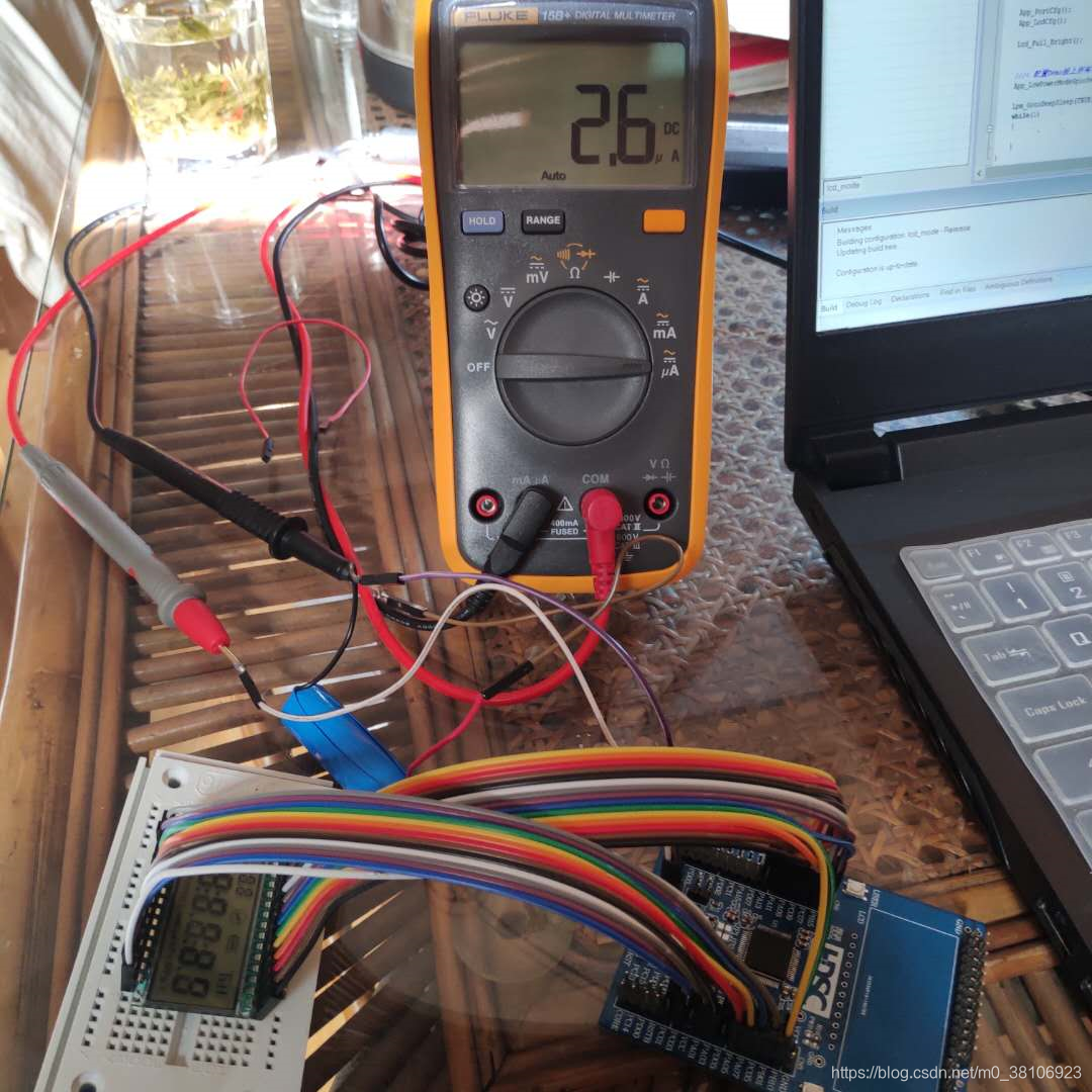 使用低功耗设计后,耗能约为2.6微安,极大降低了功耗,如下图所示: