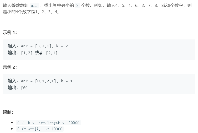 int* getLeastNumbers(int* arr, int arrSize, int k, int* returnSize){