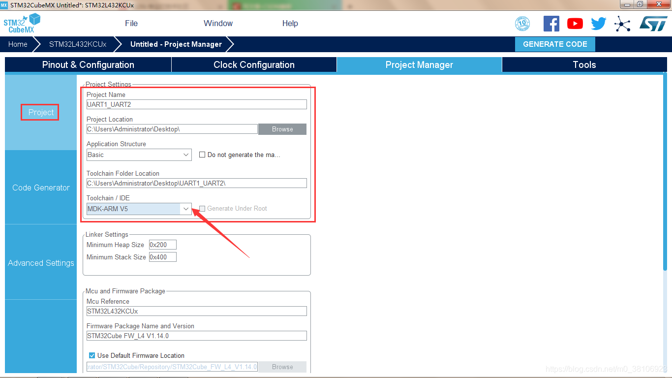NUCLEO-L432KC实现UART1、UART2双串口数据通信(STM32L432KC)