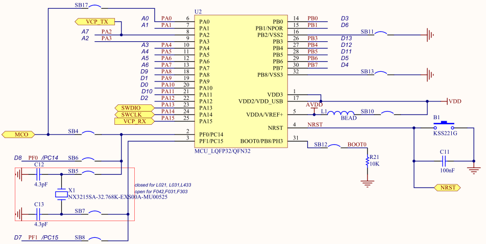 - 了解STM32L432KC LED灯外围电路搭建原理;
