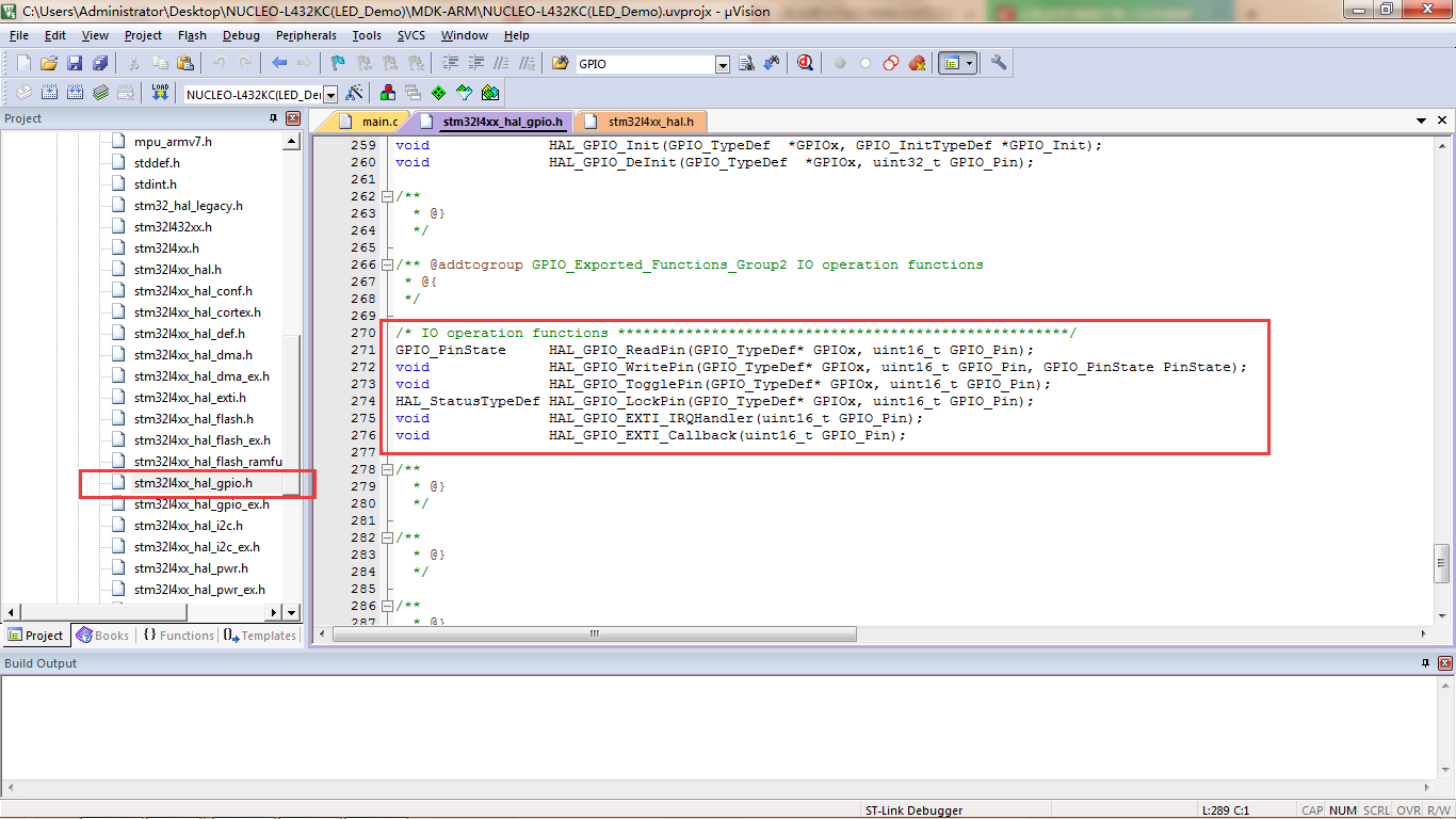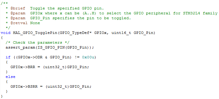 第1步: 在stm32l4xx_hal_def.h文件中查找到所需的驱动函数:HAL_GPIO_TogglePin()和HAL_GPIO_WritePin,在stm32l4xx_hal.h文件中查找到所需的延时函数:HAL_Delay()。