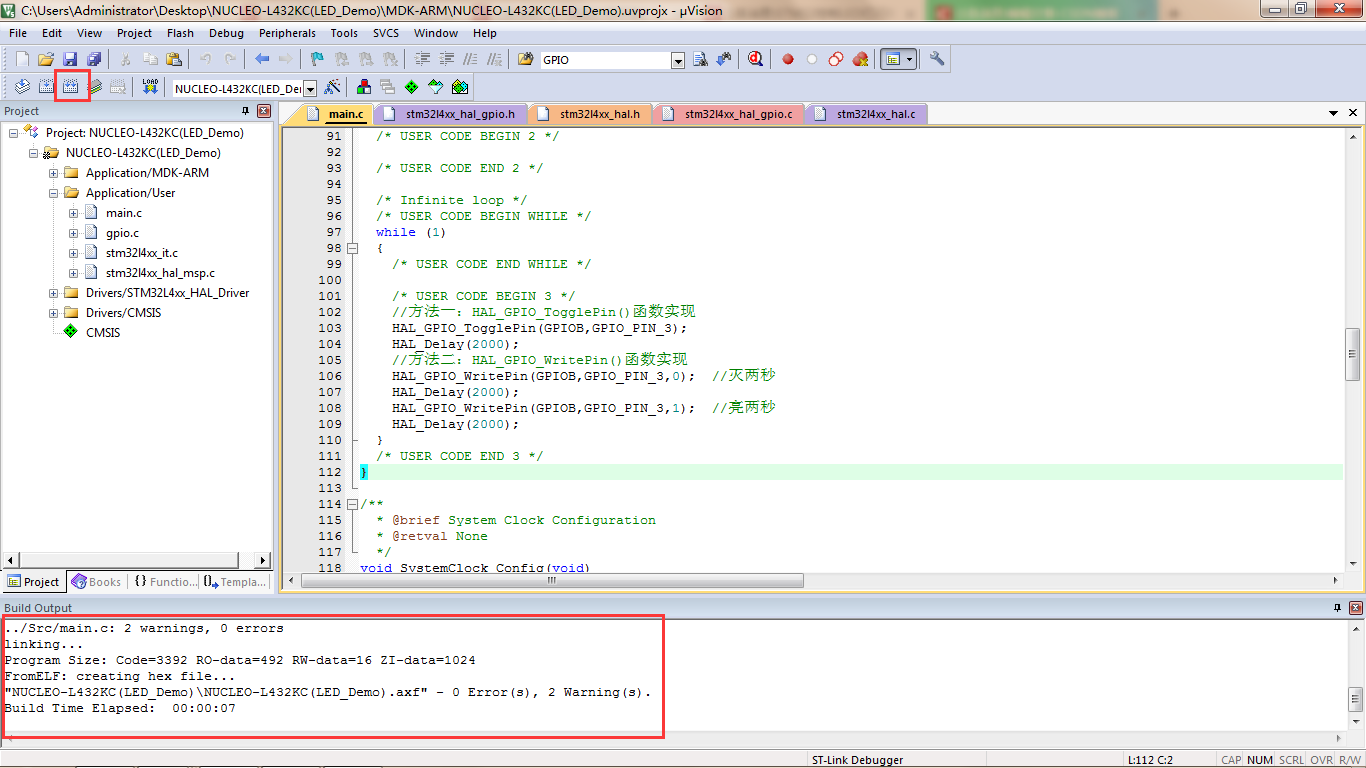 NUCLEO-L432KC实现GPIO控制(STM32L432KC)