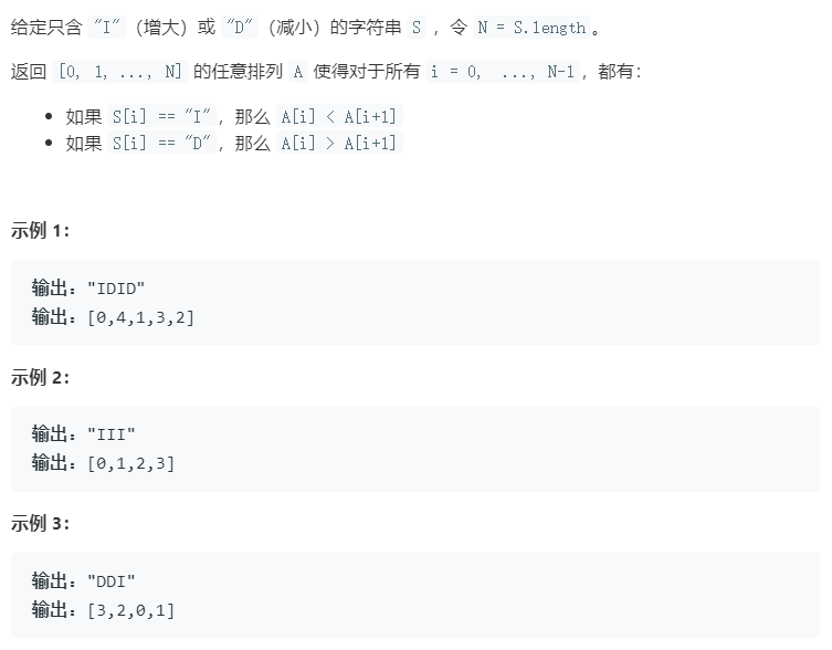 int* diStringMatch(char * S, int* returnSize)