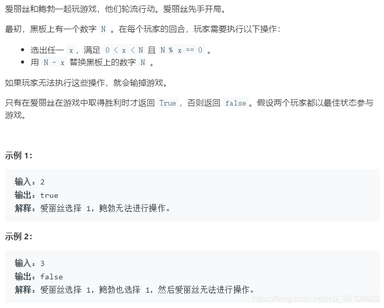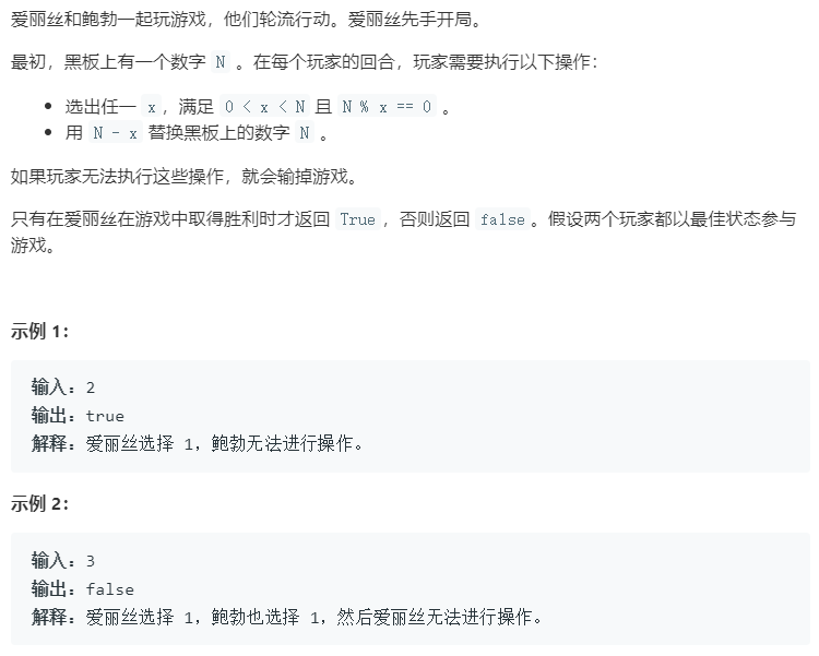 // 反过来,如果爱丽丝拿到偶数,只需要-1给鲍勃,那么鲍勃就必输。