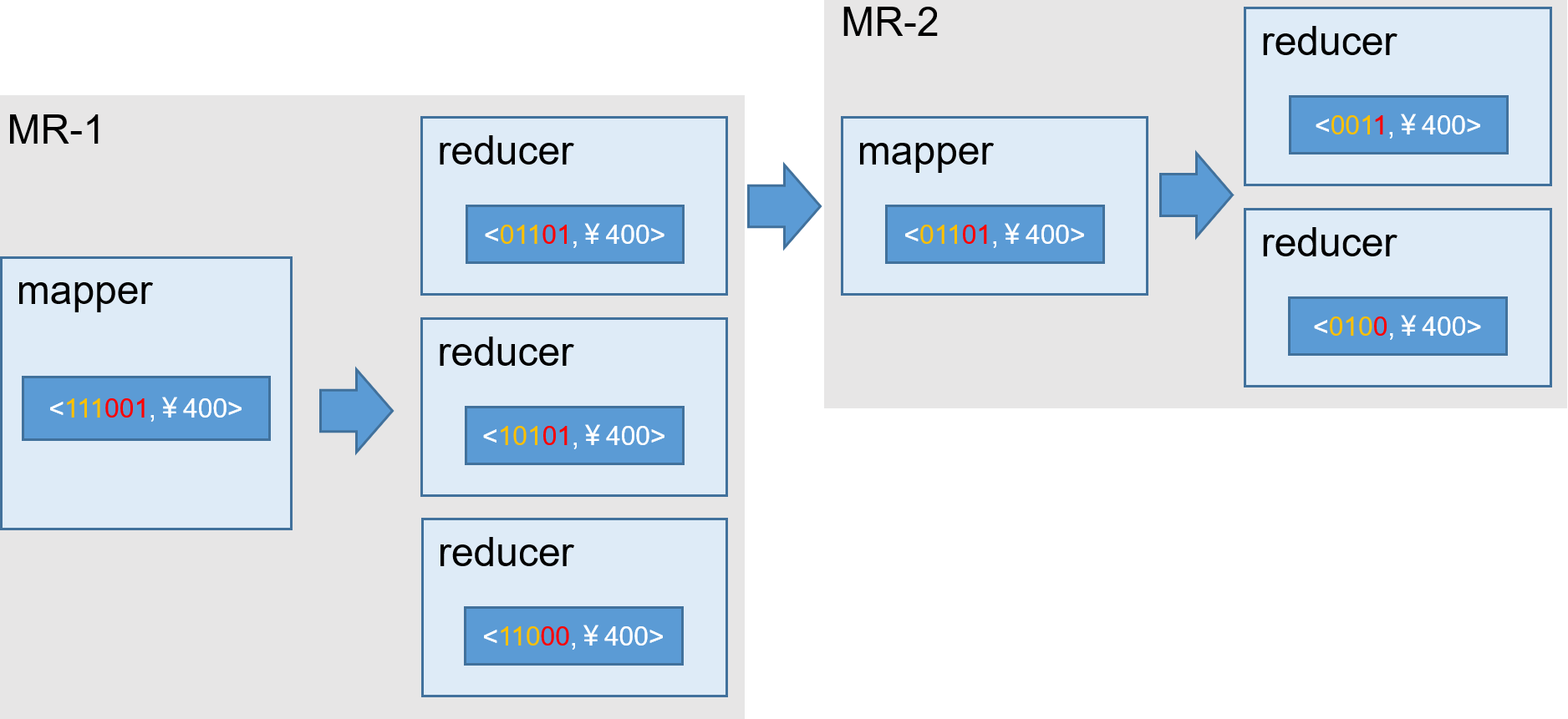 - 2.由于Mapper逻辑中并未进行聚合操作,所以每轮MR的shuffle工作量都很大,导致效率低下。