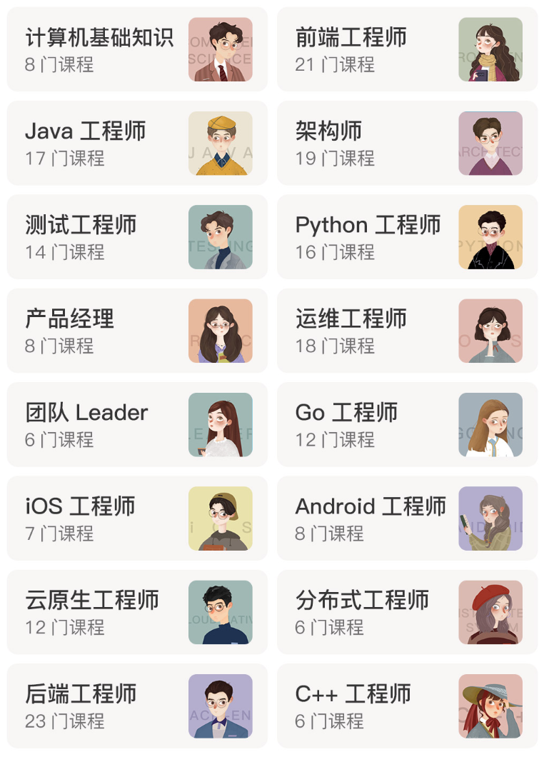 除上述Python系列课程外,极客时间全部课程均面向企业免费开放,内容涵盖移动、前端、后端、架构、运维、编程语言、测试、大数据、云原生,研发团队的成员都能找到适合自己学习的实战课程。