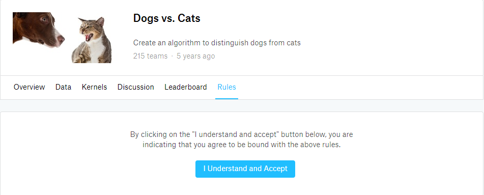 5.下载数据集之前我们还需要同意相关Rules,点击“I Understand and Accept”