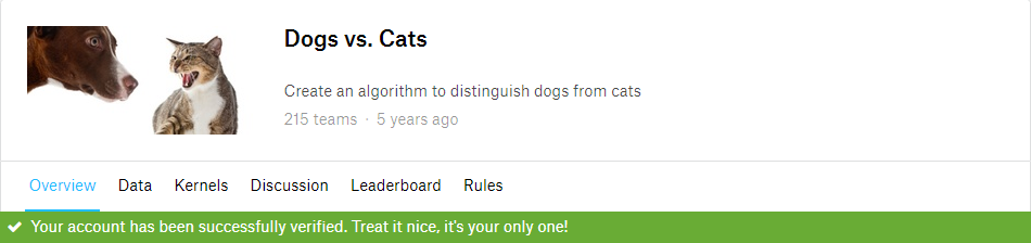1.进入网址:https://www.kaggle.com/c/dogs-vs-cats/data,顺便注册账号。如果验证邮箱时出现“You did not enter the correct captcha response. Please try again“,提示没有输入正确的验证码。这个验证码是看不到的,因为这个验证码是用google提供的api,google被和谐了,所以加载不出来,FQ就能出来验证信息,然后完成注册~