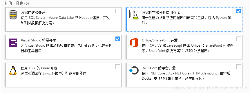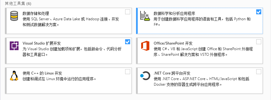 2.勾选“数据科学和分析应用程序”和“.NET桌面开发”(可选),点击“下载时安装”