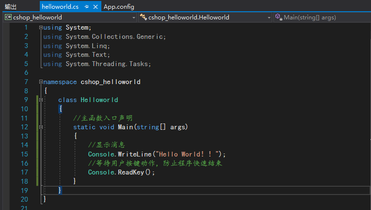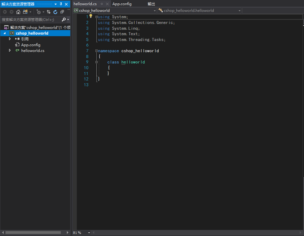 vs2017 开始自己的第一个C#程序