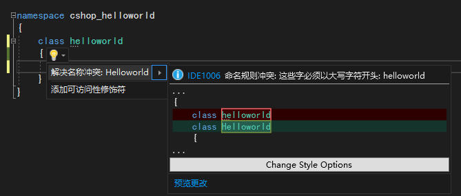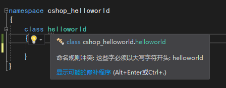 4.之后我们把鼠标移到helloworld上会提示我们有命名规则冲突,因为我们的类名和项目名称重复了