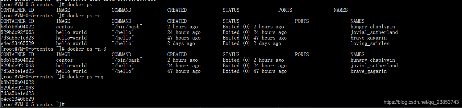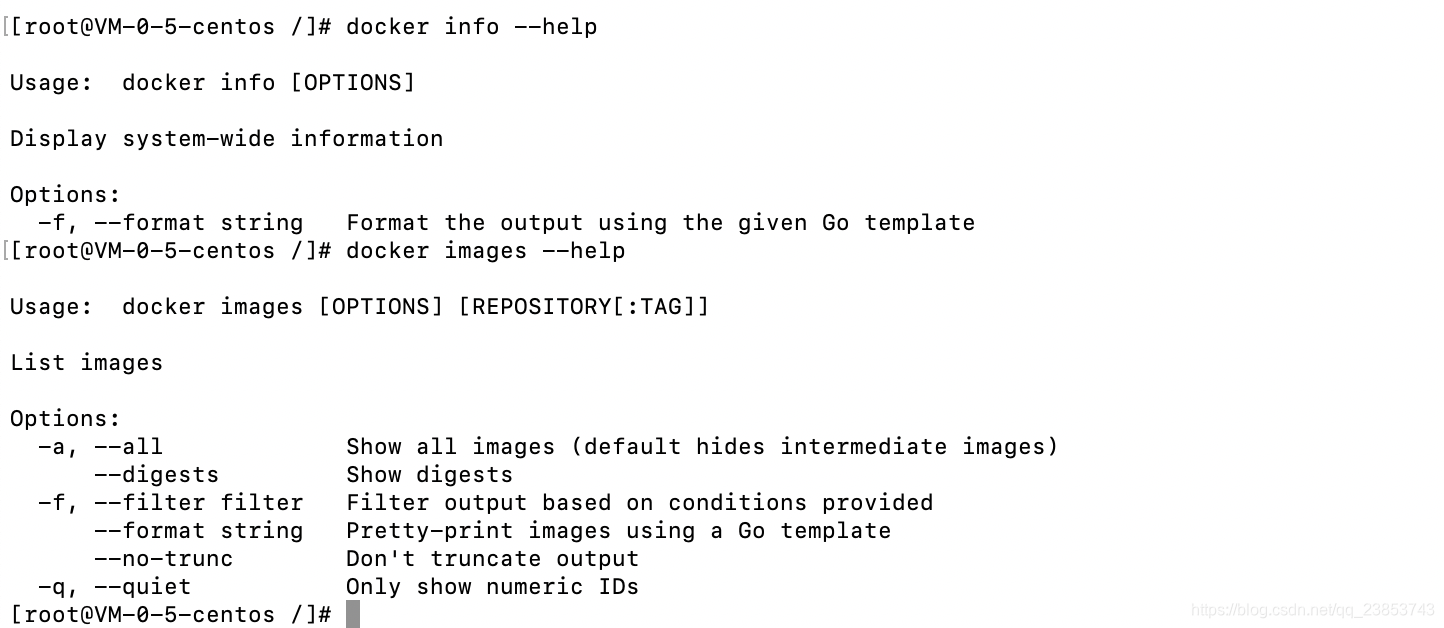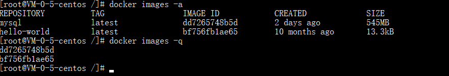 可选参数:列出所有镜像,-a, --all 。只显示镜像id ,-q, --quiet。