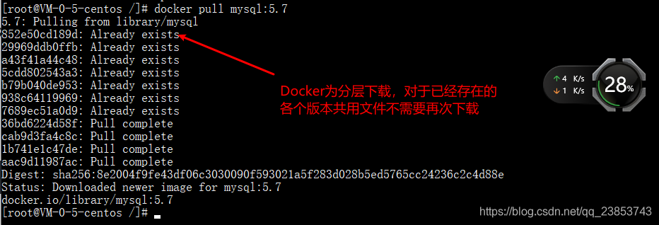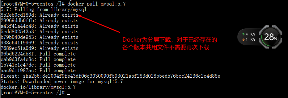 下载镜像命令:docker pull 镜像名[:tag],如果不写tag,默认是latest(最新版)。