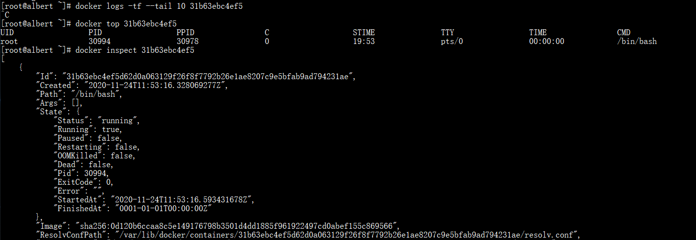 docker exec:推荐大家使用 docker exec 命令,因为这样退出容器终端,不会导致容器的停止。