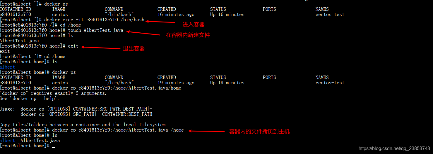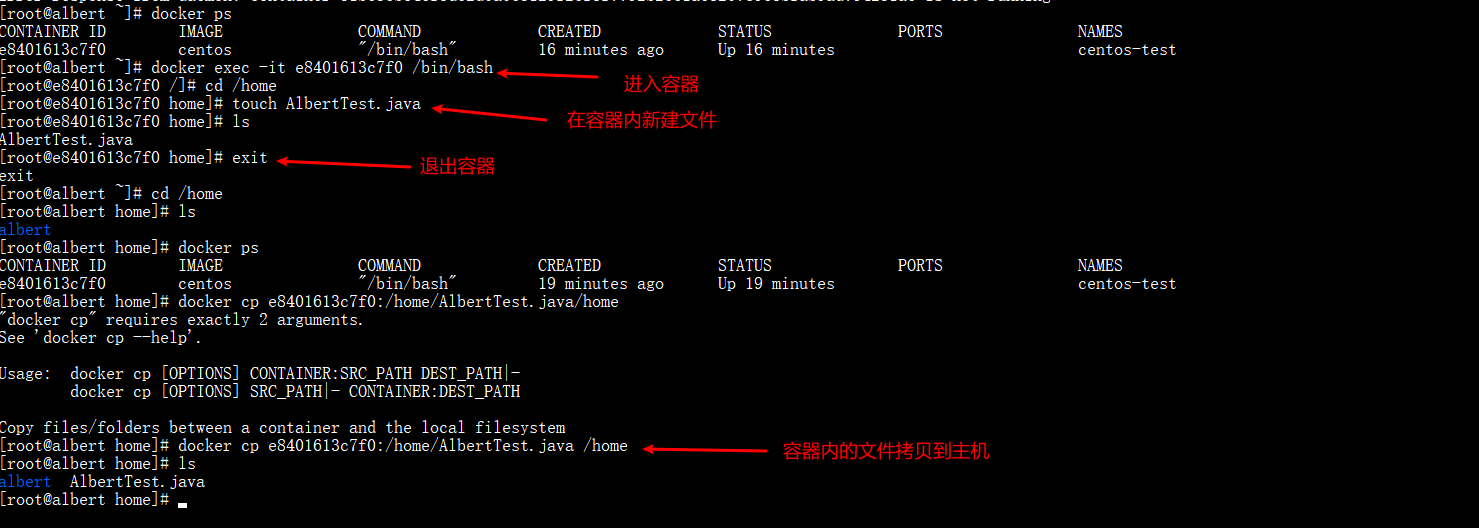 docker cp 容器id:容器内要拷贝的文件路径 拷贝到主机的路径