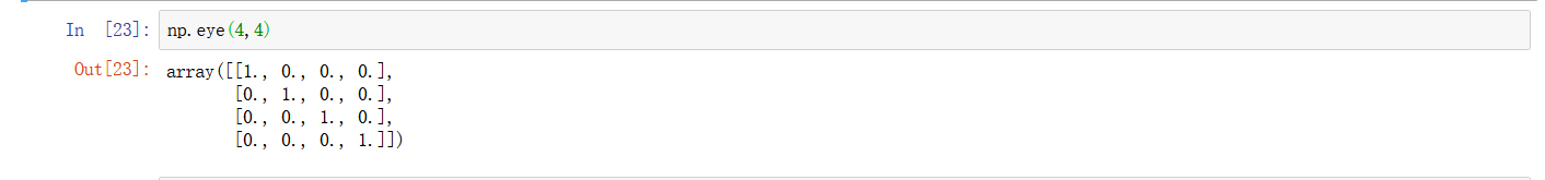 除了这个我们还可以使用其他的函数来创建数组,比如给定了长度和形状类型就会一次性创建完毕,这里是创建了一个2*3的元素是1的数组
