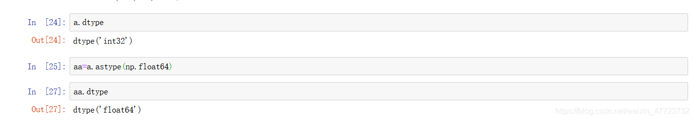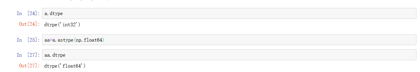 如何查看数组的数据类型以及如何进行转换,在numpy里面整型:int32,浮点型:float64.