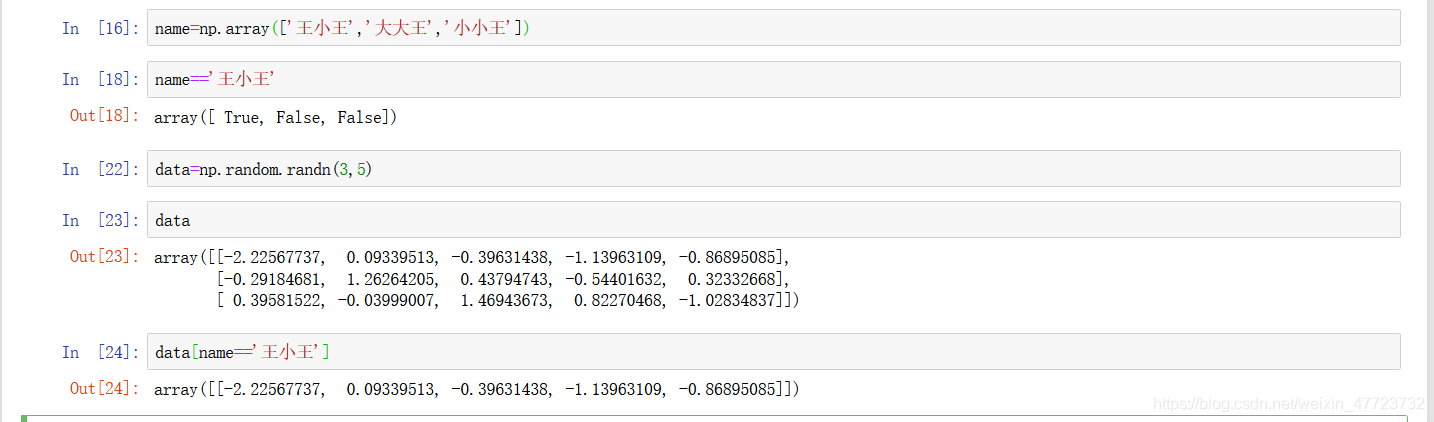 基于numpy的数组计算在之前我也演示了一些,四则运算,加减乘除,以及一些数组运算,每一个数组与数组之间的计算都是元素相互对于的,并不是独立的,这个是我们需要理解清楚的地方,有趣的是,我们需要比较两个相同维数的数组,我们可以利用> < = 来查看,它返回的是布尔值。