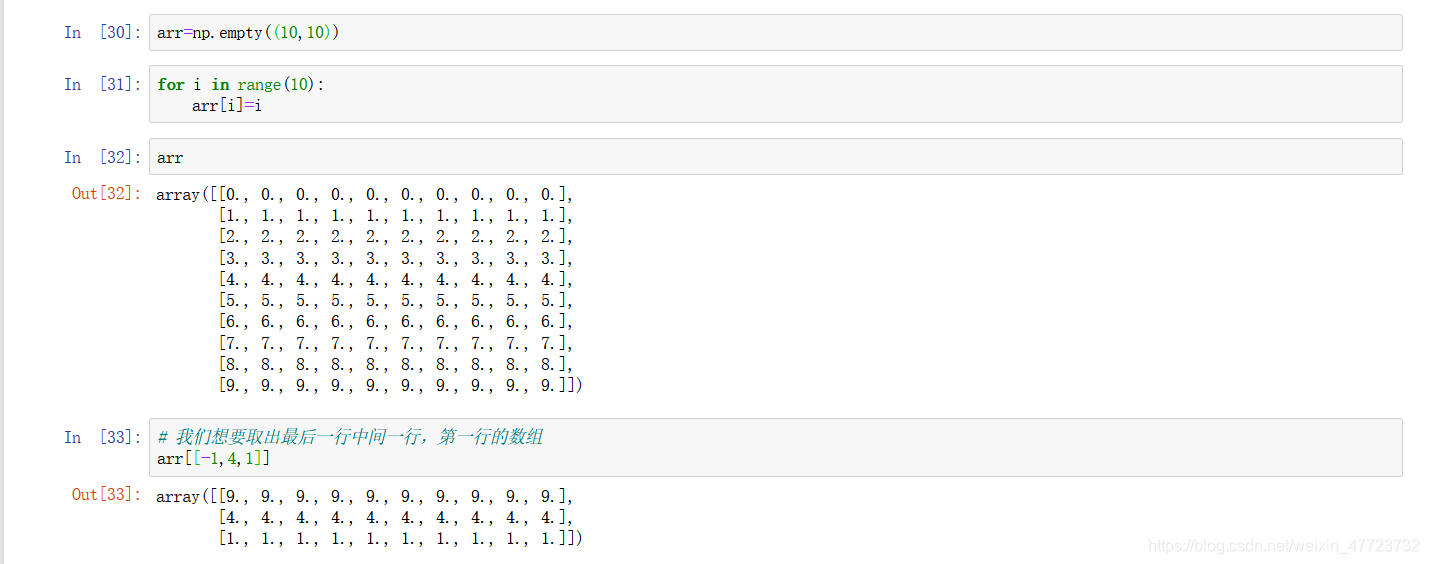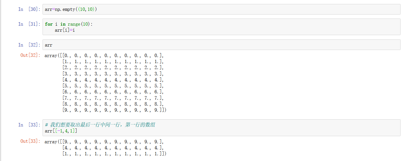 在一维的数组里面,和Python列表里面的所有一样,如果是高维的就有所不同了,就需要利用多重索引了,这里的变量和上面的一样