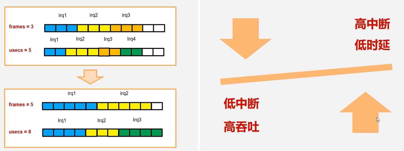 - 调用网卡中断聚合,在低时延和高吞吐取平衡点