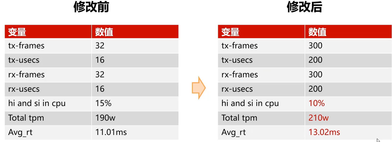 - 在数据库TPCC测试模型中降低网卡中断可以提升吞吐