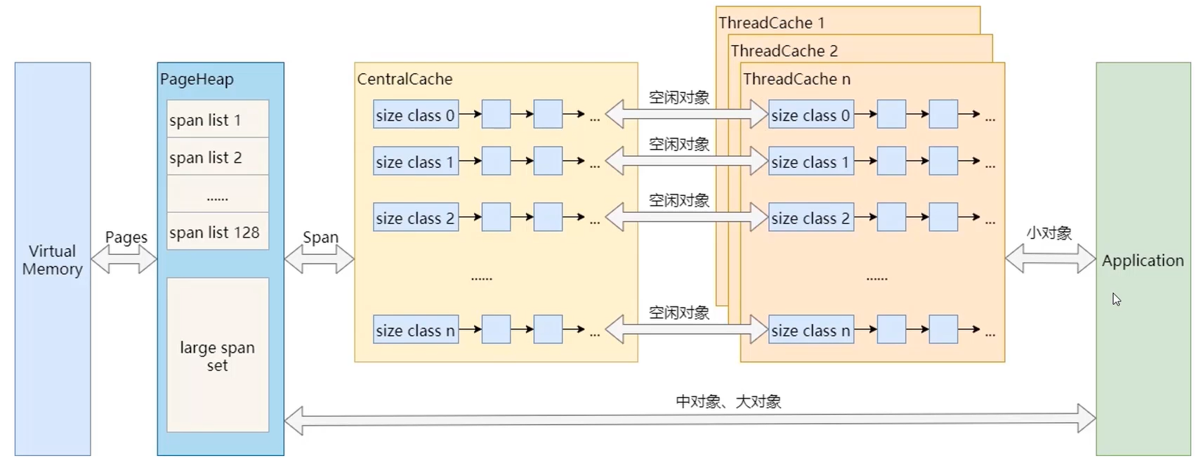 - Tcmolloc通过减少内存分配中的锁以提升高并发下的性能